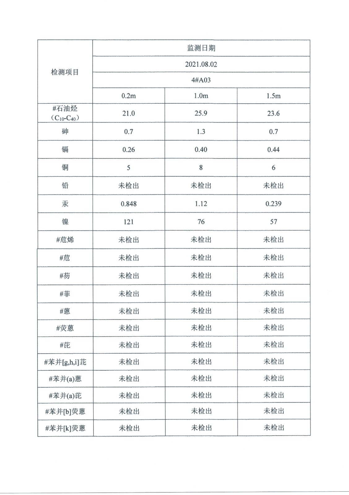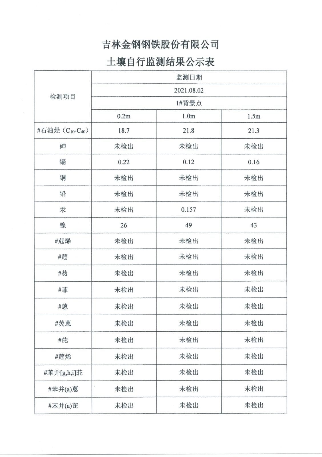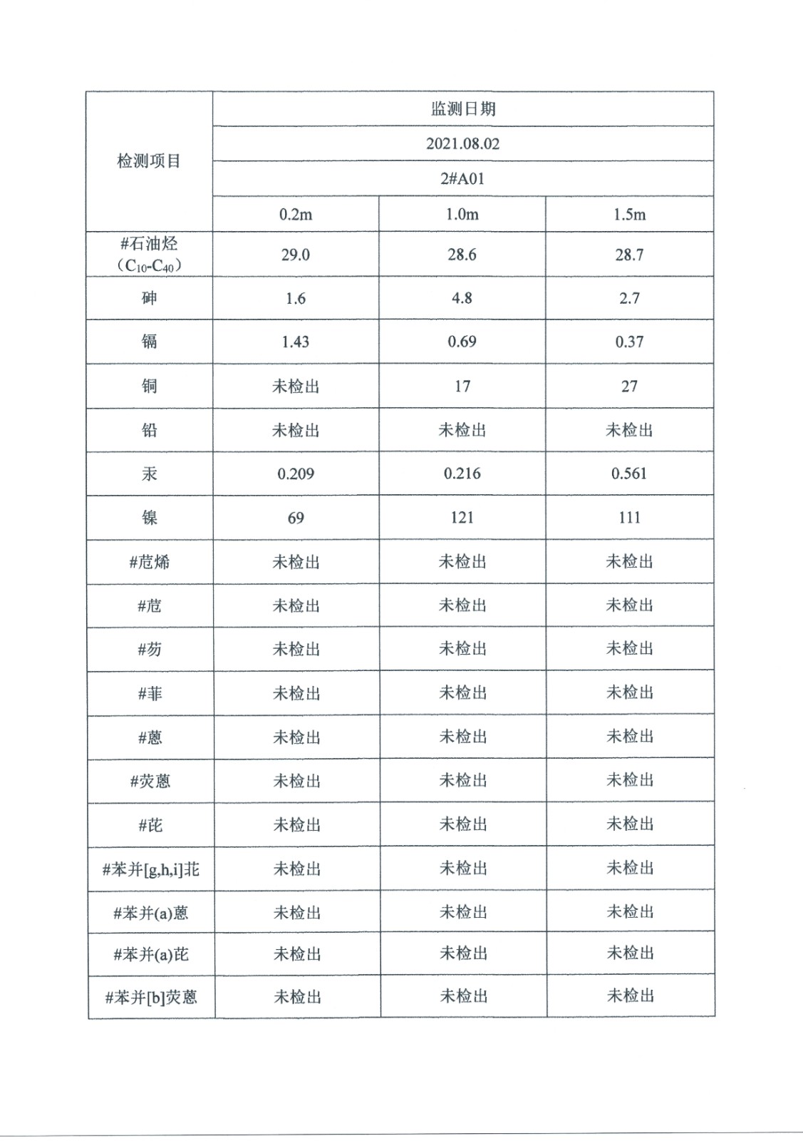 2021年土壤監測數據公示表