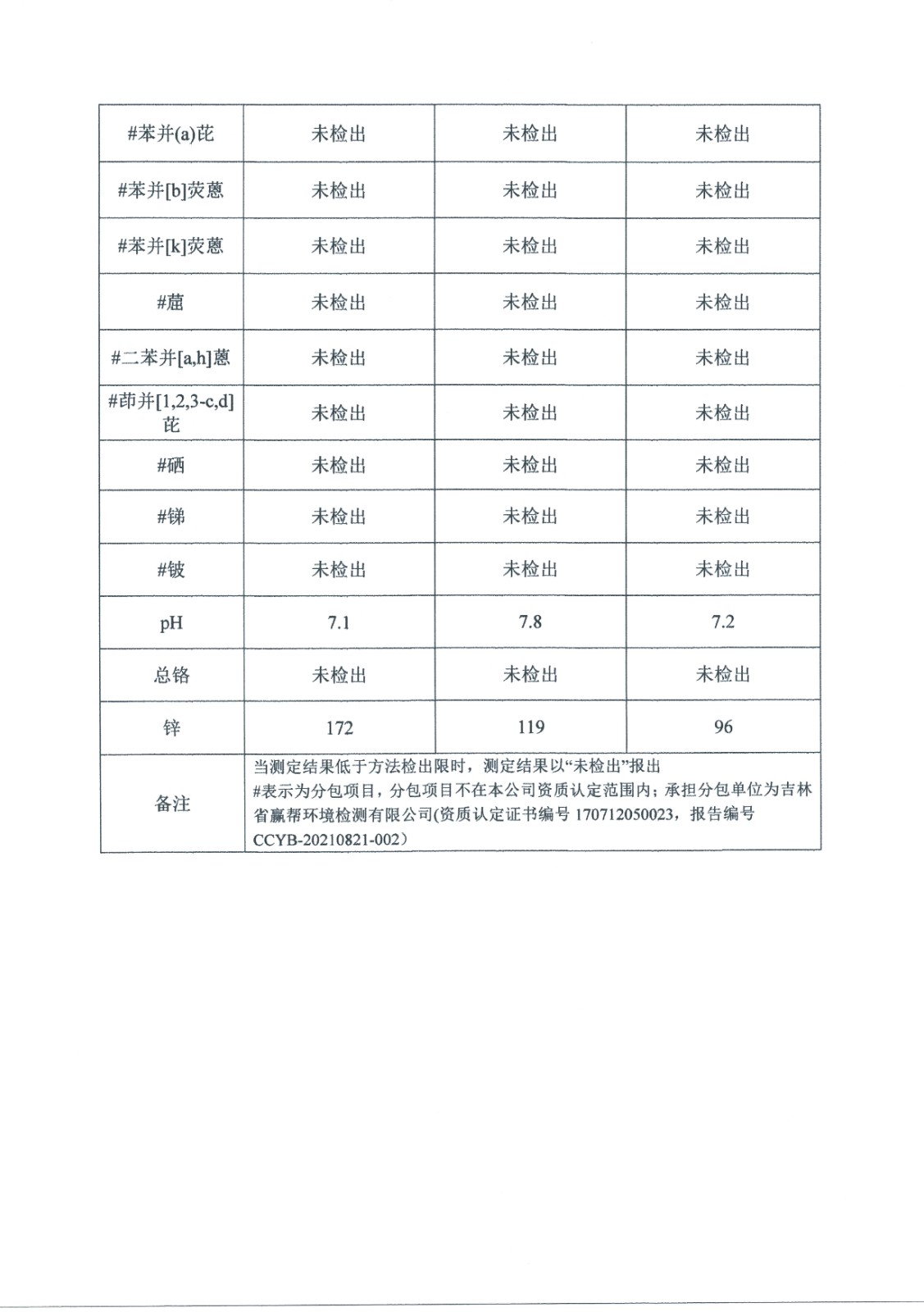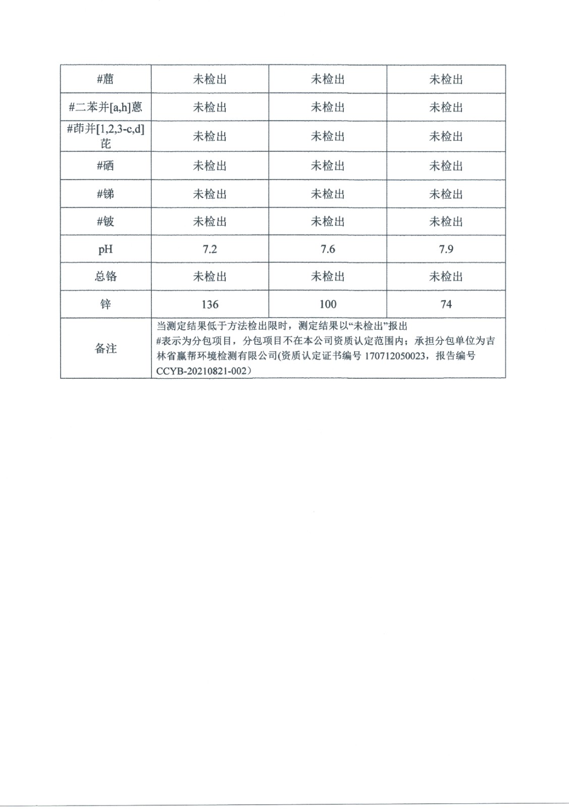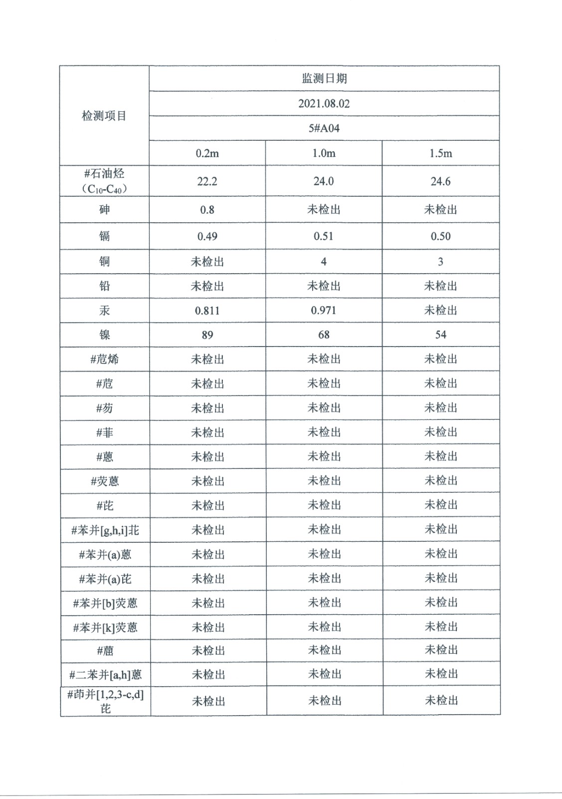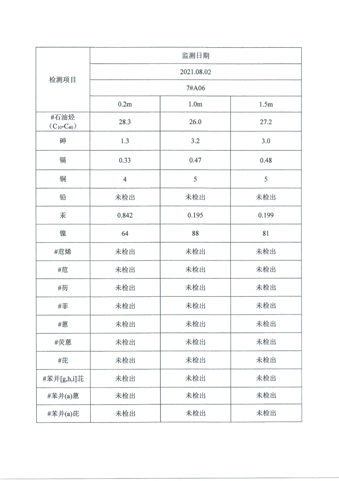 2021年土壤監測數據公示表