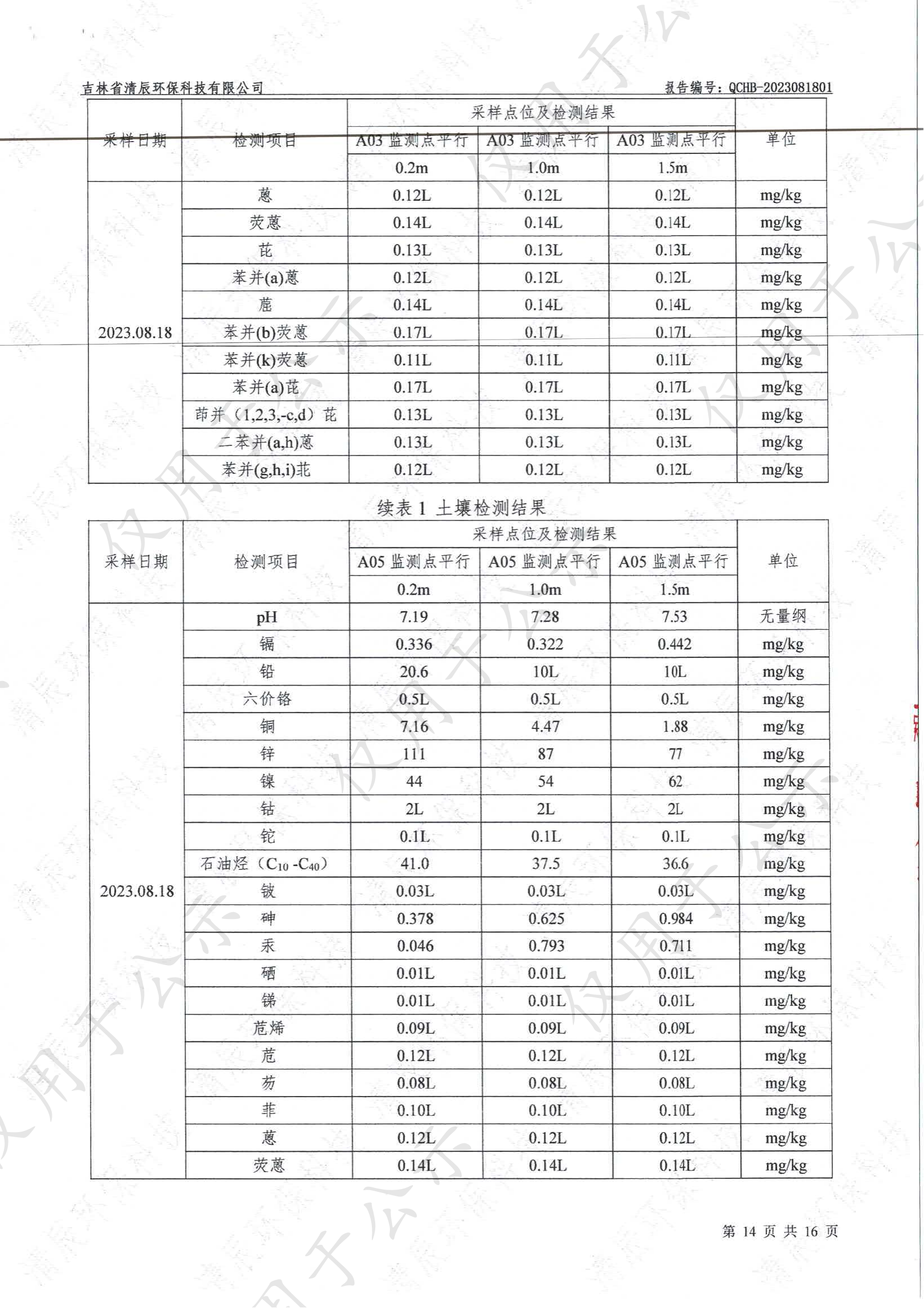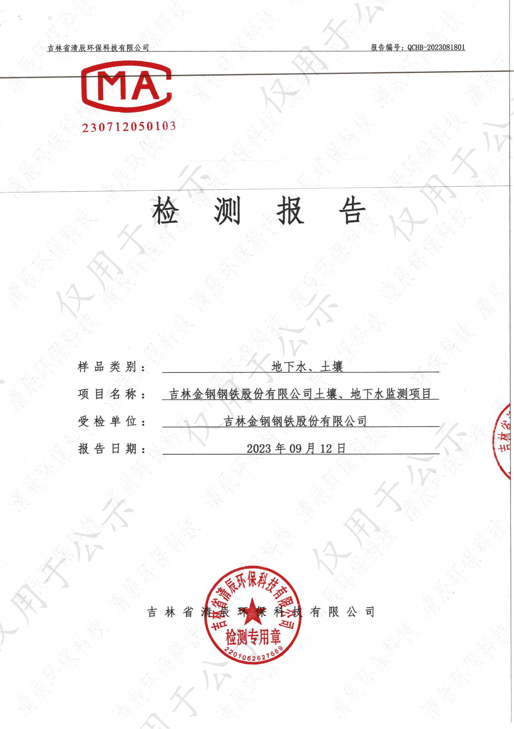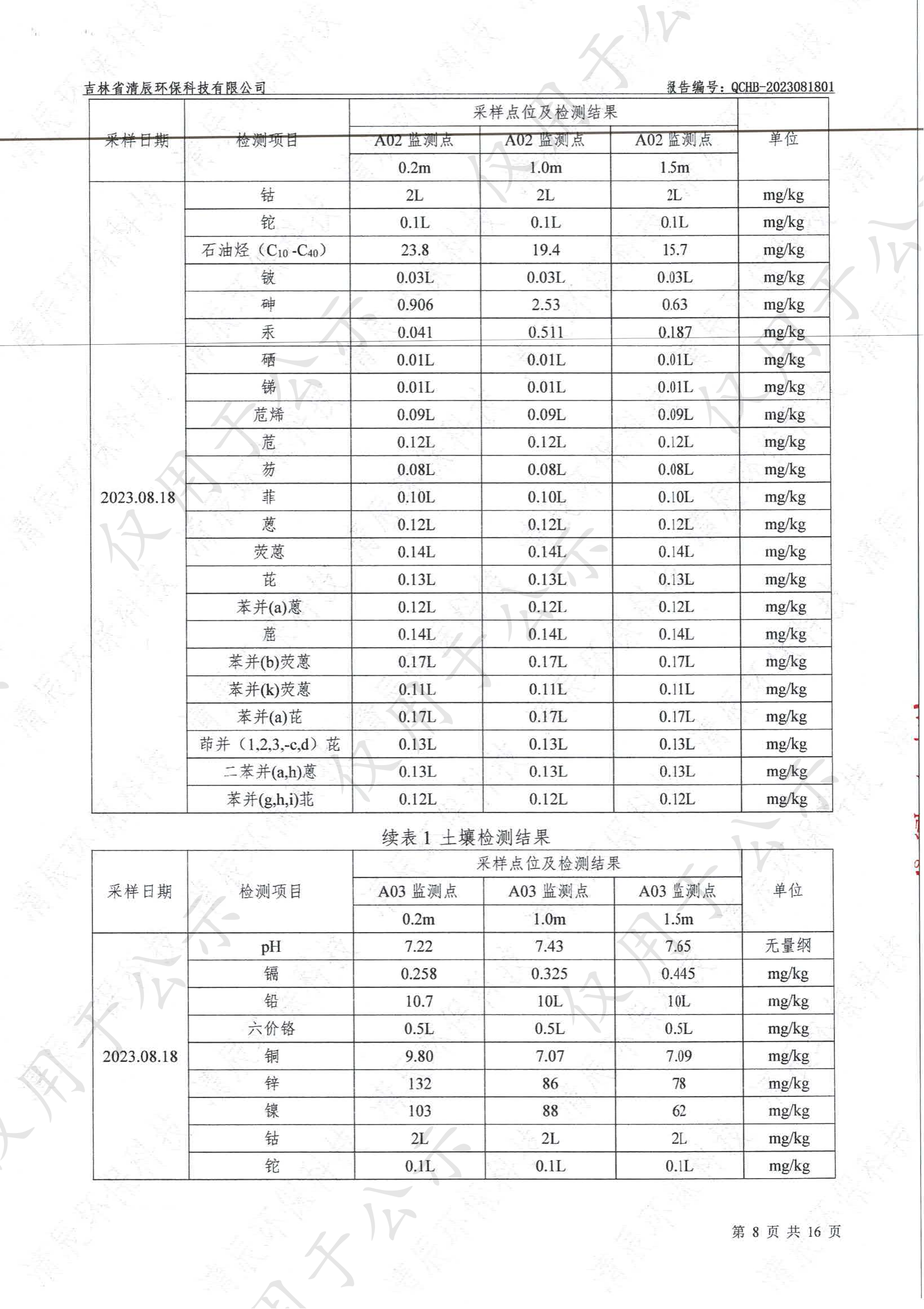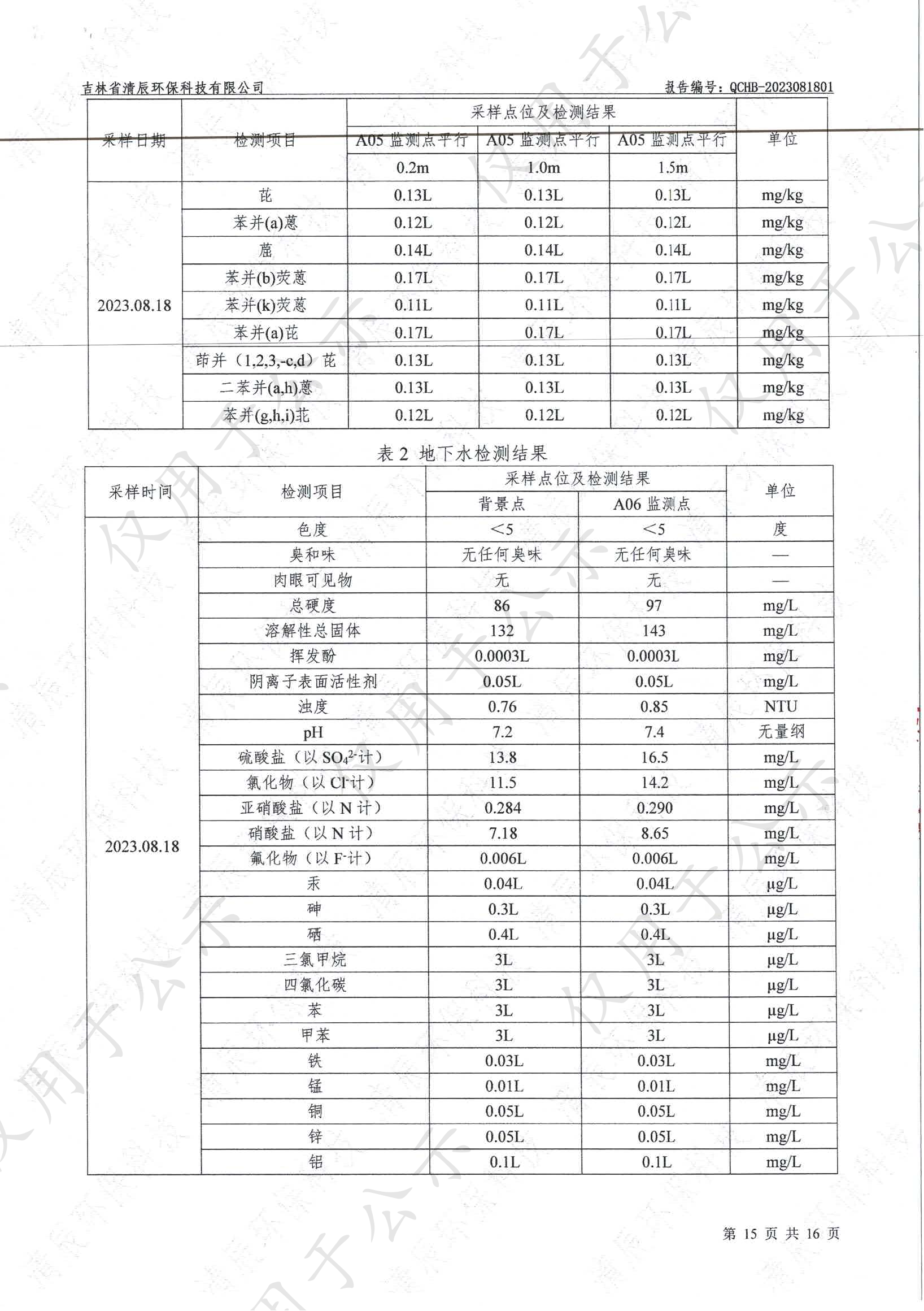 2023年土壤及地下水自行監(jiān)測(cè)數(shù)據(jù)公示